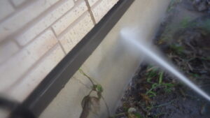 今回は屋根・外壁に加え、付帯部の「軒天」や「基礎まわり」も塗装範囲に含まれていたため、そちらも念入りに洗浄しました。